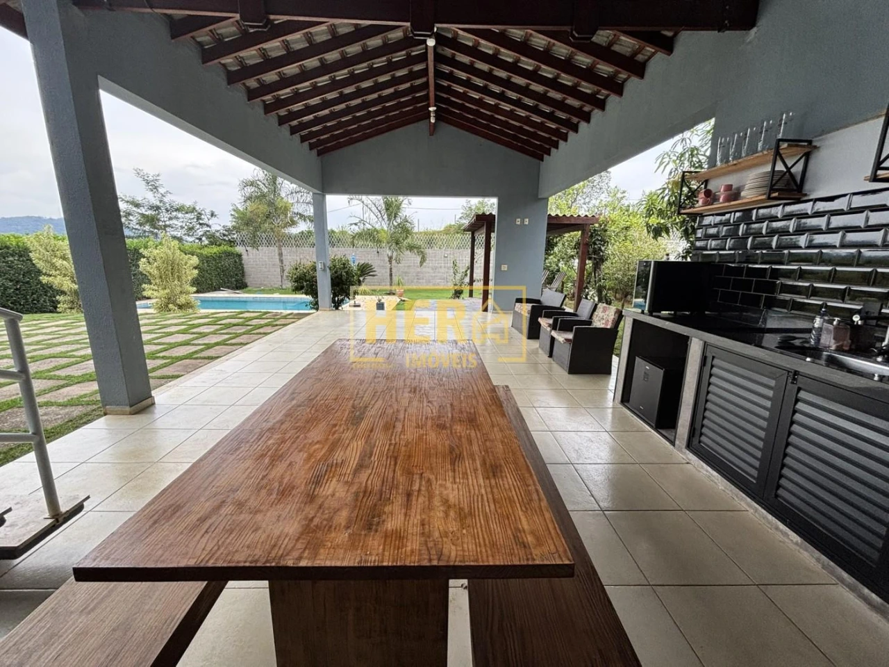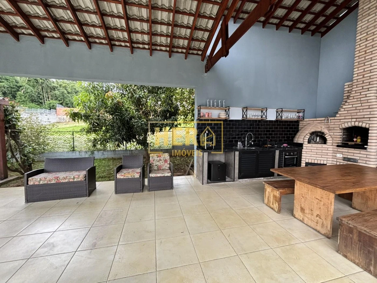 Destaque especial para a área gourmet completa, equipada com churrasqueira, forno de pizza e uma piscina perfeita para os dias de sol. O amplo quintal com árvores frutíferas como limão siciliano, jabuticaba, manga e amora trazem um toque especial ao jardim.