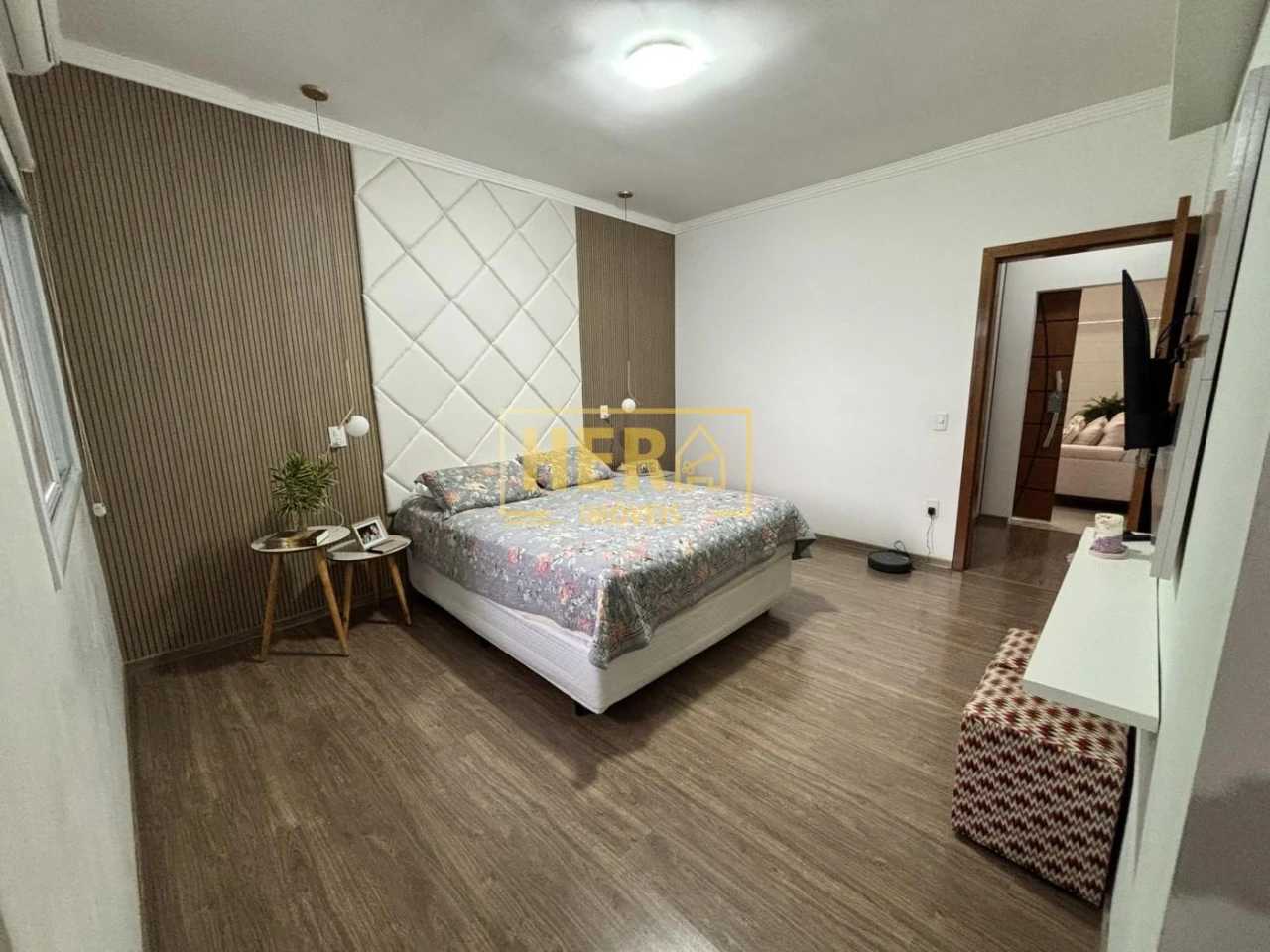 A integração entre a sala de estar, jantar e a cozinha cria um ambiente aconchegante e moderno. A parte íntima da casa conta ainda com uma sala de TV reservada, lavabo, despensa, lavanderia e banheiros bem distribuídos.